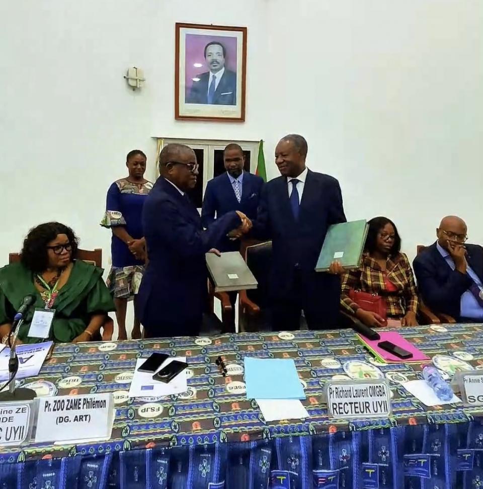 On February 9, 2026, the University of Yaoundé II and the Telecommunications Regulatory Board (TRB) signed a landmark strategic partnership agreement. The ceremony took place at 5 p.m. in the university’s ceremonial hall in Soa, under the chairmanship of Rector Prof. Richard Laurent Omgba and TRB Director General Prof. Philémon Zoo Zame, in the presence of senior academics, TRB officials, and a select group of students.