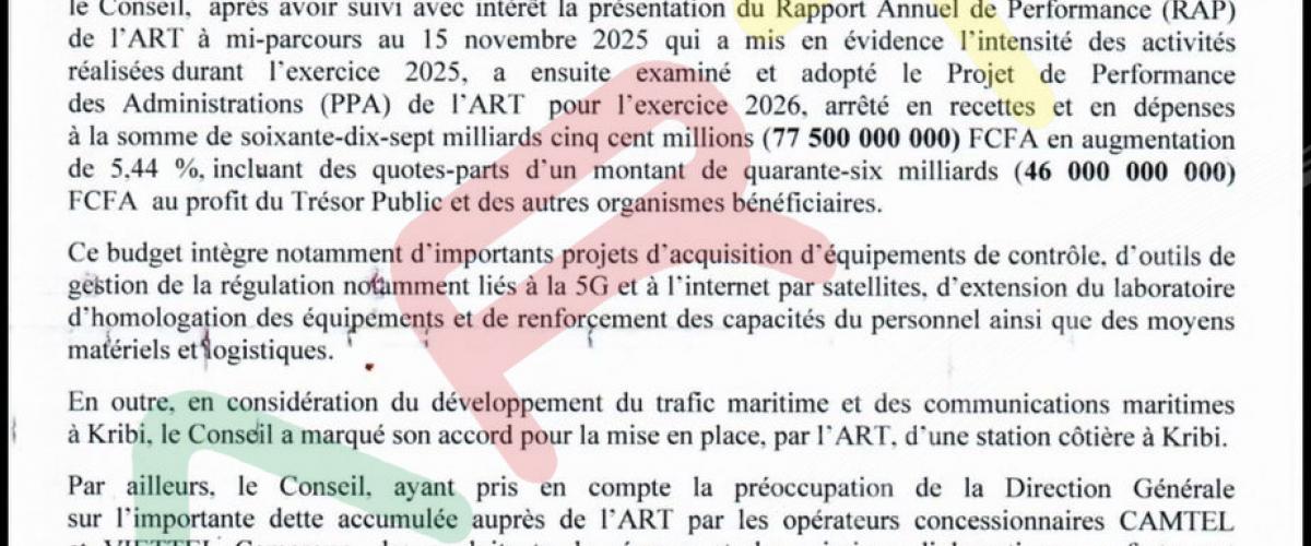 The Board of Directors of the Telecommunications Regulatory Board (TRB) convenes on 9 and 10 December 2025 in the conference hall of the Lagon Resort hotel in Kribi.