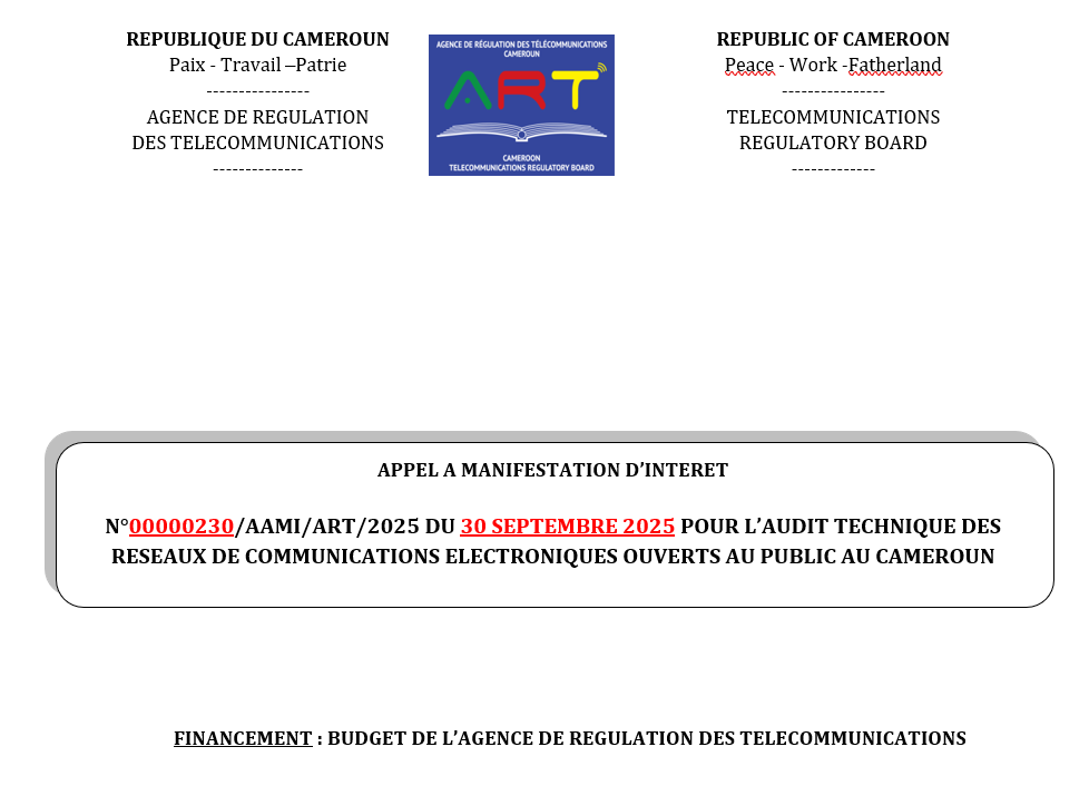 N°: N°00000230/AAMI/ART/2025 AAMI audit technique des réseaux de communications électroniques ouverts au public au Cameroun amélioré par BC -[1].pdf